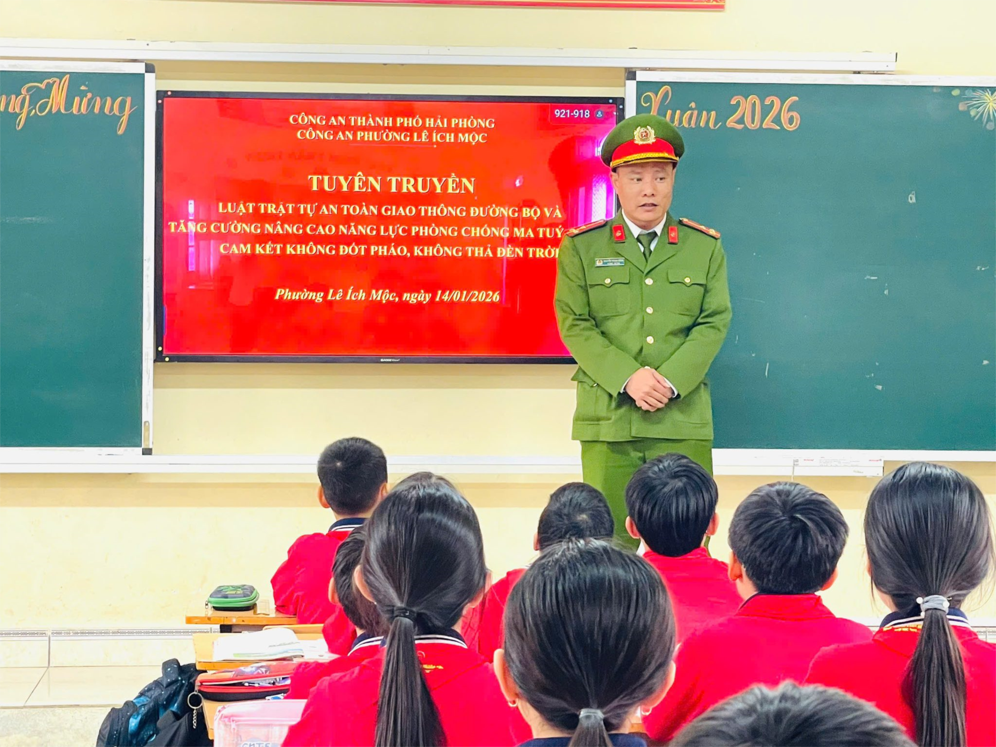 Tại buổi tuyên truyền, các đồng chí Công an phường đã truyền đạt sinh động, dễ hiểu những kiến thức cơ bản về Luật Trật tự an toàn giao thông đường bộ, hướng dẫn các em cách tham gia giao thông an toàn, đúng quy định, phù hợp với lứa tuổi tiểu học. Bên cạnh đó, nội dung phòng chống ma túy học đường cũng được nhấn mạnh, giúp các em nâng cao nhận thức, biết cách phòng tránh và nói “không” với các tệ nạn xã hội.